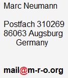 When accessing these pages or contacting M-R-O, no personal data (e.B. name, address or e-mail addresses) will be requested and stored without knowledge or permission, nor passed on to third parties. These website is running exclusively for informational purposes and paid sites or services of any kind are not offered. No cookies are used when visiting our website. Only the usual cookie for the Favicon.icon is automatically loaded to display the M-R-O logo in the browser. However, the usual access data (IP address, browser, date, time, referer, HTTP response code, etc.) are temporarily stored for purely statistical purposes and then deleted again, in so-called log files on the servers of our web host (Strato Germany). There is no assignment of the visitor or any profiling on this website, but serves only for security and optimization or troubleshooting in accordance with Art. 6 sec. 1 p. 1 f) GDPR. Only in case of hacker attacks will this user access data be passed on to the relevant investigative authorities.